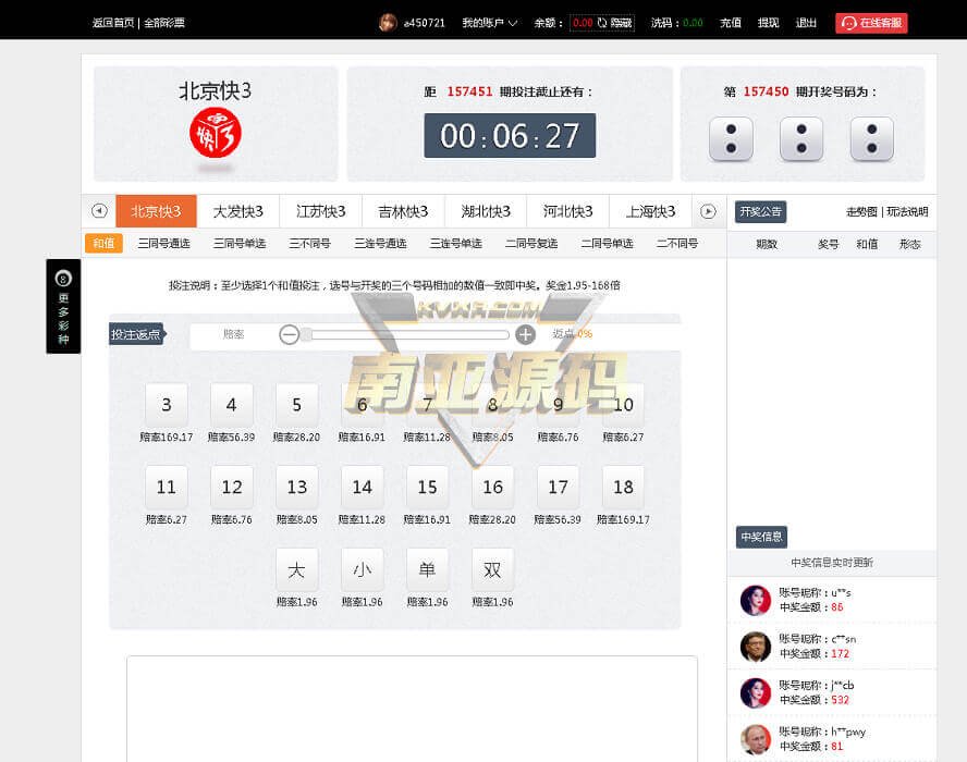 赛马会大富彩票网站源码,大发云彩票系统平台,拥有快三、时时彩、PK10等热门彩票游戏 主打快3游戏,UI界面好看符合彩票网站风格,分系统自主彩和官方接口彩,均可手动开奖和提前预设结果,可以概率控杀; 为ThinkPHP框架开发 搭建环境:Apache+PHP5.38+MySQL 5/5 - (1 vote) 资源下载下载价格450 USDT立即购买温馨提示:当前网盘链接正常,请放心购买/下载
